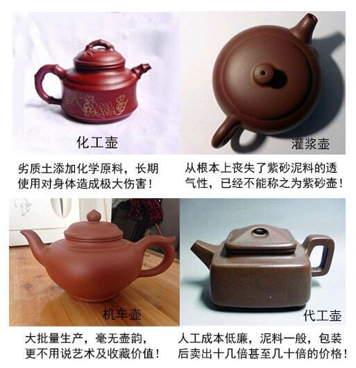 市场上到处充斥着化工壶、机车壶、灌浆壶,严重扰乱的紫砂市场的秩序,使用化工壶对人体有害,而机车壶是用机器批量生产的茶壶,部分商家为了牟利,用假的紫砂泥料,添加玻璃水和着色剂来增加卖相,这是令人唾弃的!